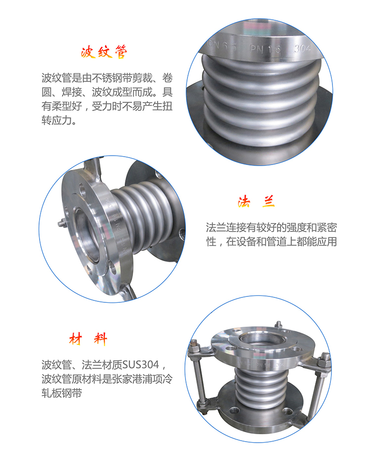 1.金屬軟管整體采用1Cr18Ni9Ti不銹鋼材料制成,具有較強(qiáng)的耐腐蝕能力。
